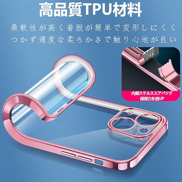 iPhone14 ケース クリア 透明 アイフォン14 カバー 耐衝撃 TPU 素材 メッキ枠 薄型 軽量 メッキ加工 ソフト 人気 (ローズゴールド)