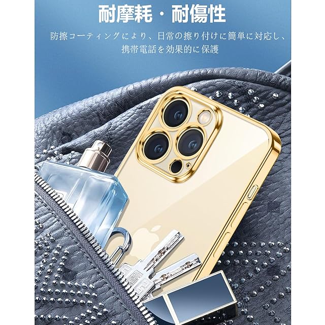 【おしゃれなデザイン】フレームは3層メッキ加工技術と超微細なレーザー加工技術、によって設計iPhone14 Pro max本体の美しさを更に引き立て高級感のあるiPhone14 Pro maxケース。 裏面は透明の為、本体の色をそのまま映し出すことができ端末のオリジナルカラーを損ねません。透明な背面はiPhone14 Pro maxの本来の美しさを示し、フレームのメッキはよりおしゃれに感じます。