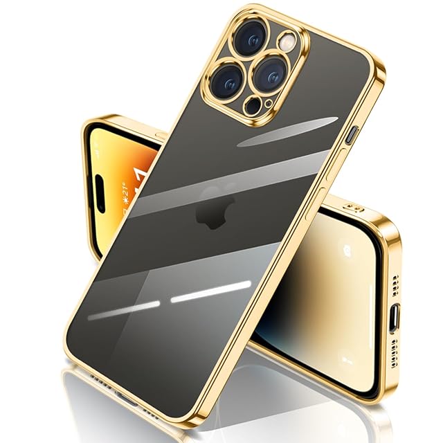 iPhone14 Pro max ケース クリア 透明 アイフォン14Promax カバー 耐衝撃 TPU 素材 メッキ枠 薄型 軽量 メッキ加工 ソフト 人気 (ゴールド)