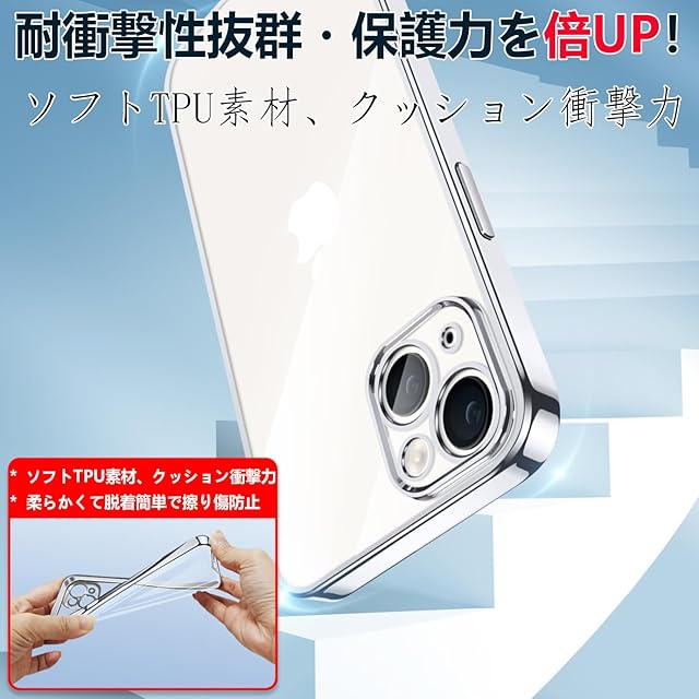 iPhone15 用 ケース クリア 透明 アイフォン15 カバー 耐衝撃 TPU 素材 メッキ枠 薄型 軽量 ソフト メッキ加工 人気(シルバー)