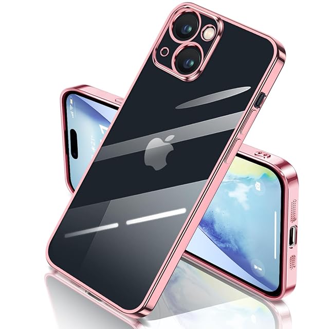 iPhone15 用 ケース クリア 透明 アイフォン15 カバー 耐衝撃 TPU 素材 メッキ枠 薄型 軽量 ソフト メッキ加工 人気(ローズゴールド)
