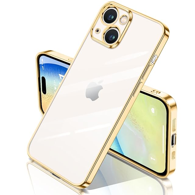 iPhone15 Plus 用 ケース クリア 透明 アイフォン15Plus カバー 耐衝撃 TPU 素材 メッキ枠 薄型 軽量 ソフト メッキ加工 人気(ゴールド)