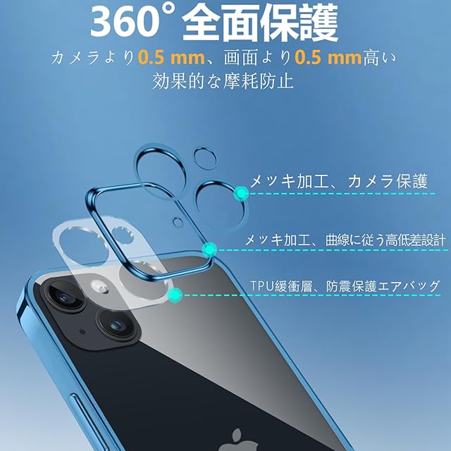 iPhone15 Plus 用 ケース クリア 透明 アイフォン15Plus カバー 耐衝撃 TPU 素材 メッキ枠 薄型 軽量 ソフト メッキ加工 人気(ブルー)