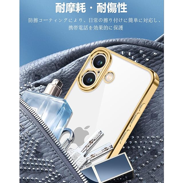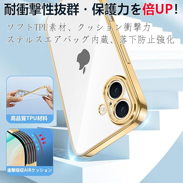 iPhone16 用 ケース クリア 透明 アイフォン16 カバー 耐衝撃 TPU 素材 メッキ枠 薄型 軽量 ソフト メッキ加工 黄ばまない 米軍規格 人気 可愛い おすすめ (ゴールド)