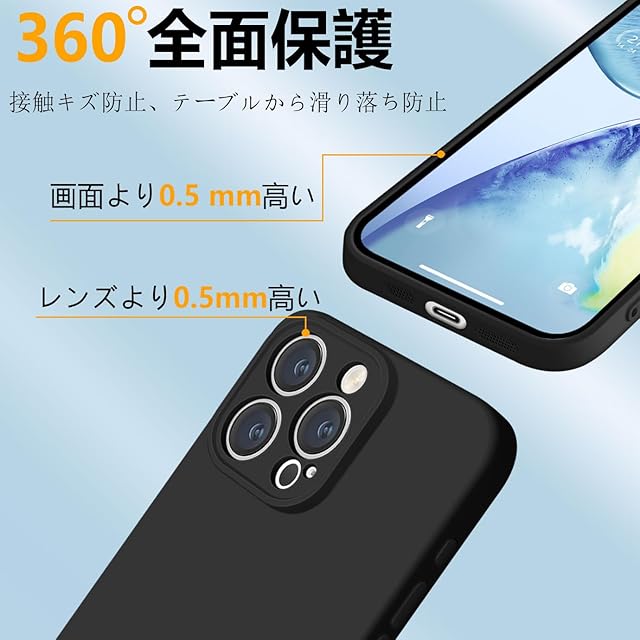 iPhone 16 Pro 用 ケース シリコン 耐衝撃 アイフォン 16 Pro カバー さらさら手触り 傷付き防止 超軽量 マット質感 指紋防止 レンズ保護 ワイヤレス充電 (黒)