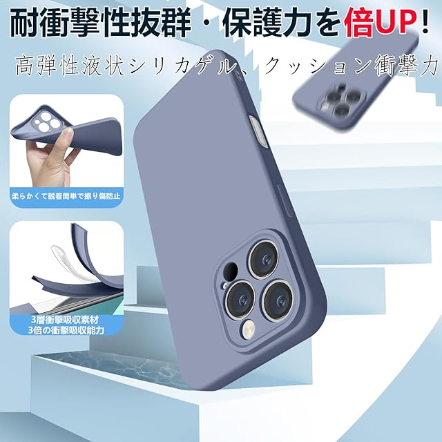 iPhone 16 Pro Max 用 ケース シリコン 耐衝撃 アイフォン 16 Pro Max カバー さらさら手触り 傷付き防止 超軽量 マット質感 指紋防止 レンズ保護 ワイヤレス充電 (グレーブルー)