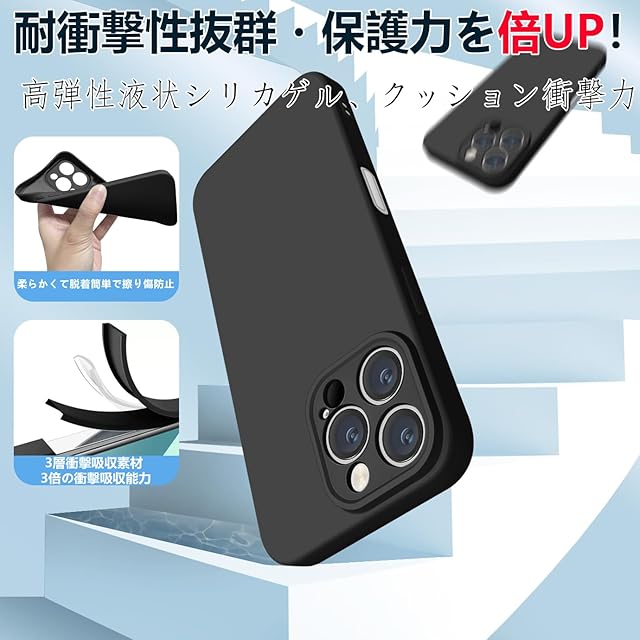iPhone 16 Pro Max 用 ケース シリコン 耐衝撃 アイフォン 16 Pro Max カバー さらさら手触り 傷付き防止 超軽量 マット質感 指紋防止 レンズ保護 ワイヤレス充電 (黒)