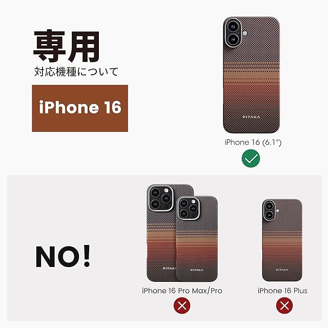 「PITAKA」iPhone 16用 浮織ケース MagSafe対応 上下カバーした アラミド繊維製 ワイヤレス充電対応 耐衝撃 薄型 おしゃれ Tactile Woven Case(Sunset)