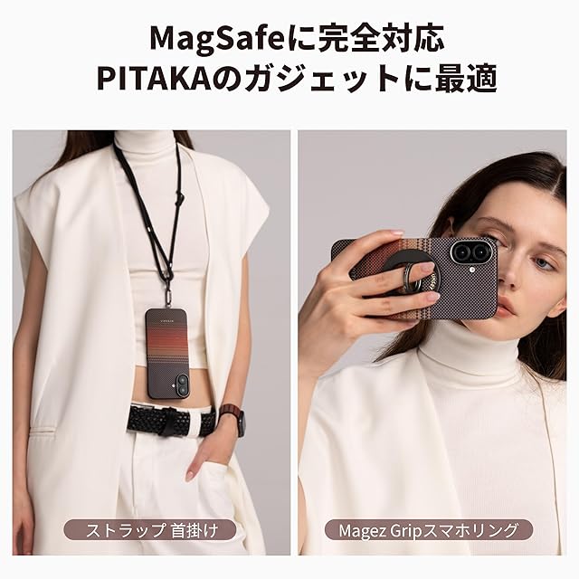 【MagSafeに完全対応】PITAKAが有する特許技術でMagSafe対応リングマグネットとアラミド繊維一体成型を実現します。薄型化だけでなく、充電性能も大幅に向上させました。内蔵された超強力なN52SHマグネットによって、MagSafeアクセサリーをしっかりと固定できます。そのためNFC車載MagEZ Car Mount Pro 2に安定したワイヤレス充電が可能です。またPITAKAのMagSafeスマホリングMagEZ Gripと2in1ストラップにマッチします。
