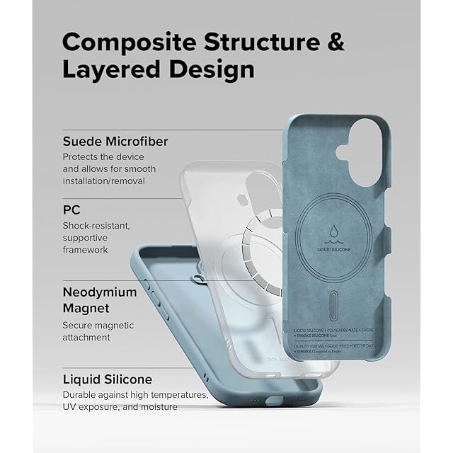 Ringke Silicon Magneticケースは、高品質の液状シリコーン素材で製作され、深みのある豊かな色を出してiPhone 16に高級で洗練された外観を与えます。<br> 人間工学的な4層構造を採用したRingke Silicon Magneticケースは、日常使用の試練に耐え、衝撃や傷からデバイスを守ります。<br><br> 外層は液状のシリコーンでできています。 非常にシルキーなテクスチャーにより、ケースをユーザーの手に快適にフィットさせ、携帯電話のグリップ性を向上させ、偶発的な落下や傷を防止します。<br> 蓄積されたほこりや外部のマーキングは、簡単に拭き取ることができるため、時間と使用によって色あせしない清潔で新鮮な外観と色を維持できます。<br><br> 内部ポリカーボネートフレームワークの2番目の層は、その保護と耐久性でよく知られている固体材料です。<br> PCフレームはケースの形を保持し、圧力や衝撃からスマートフォンを保護することで、ケース全体に落下した衝撃波を均等に分散させ、機器への直接的な損傷を最小限に抑えます。<br><br> 3層目はケースの中に隠された内蔵磁気リングです。 この磁気リングは、デバイス内に埋め込まれた磁気コイルとMagSafe互換の充電器およびアクセサリ間のリンクを強化し、完璧な使用を可能にします。<br><br> 最後のインナーレイヤは、デバイスを安全かつスムーズに包み込む、プラスの高品質マイクロファイバーです。<br> 装置との直接接触を通じてマイクロファイバーがケース内の微細粉塵の進入と移動を止め、スマートフォン本体に直接スクラッチや擦れが発生しないようにする。<br><br> Ringke Silicon Magneticケースは、カバー付きのボタンとカメラベゼル、精密なカットアウト、画面周りの持ち上げエッジで最高のスマートフォンエクスペリエンスを提供するように構成されています。