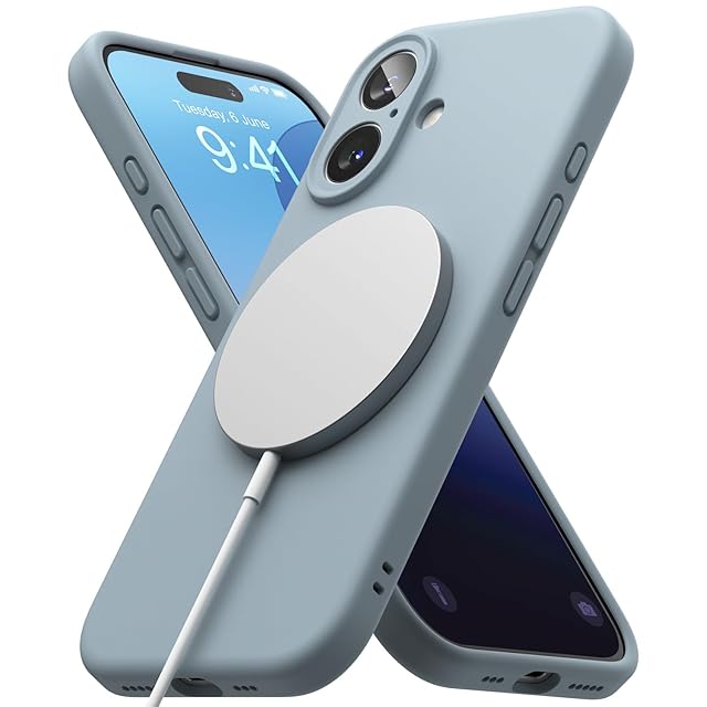 【Ringke】iPhone 16 ケース SILICONE MAGNETIC 液状シリコン素材 落下防止 耐衝撃 軽量ケース 柔軟ケース マグネット搭載 スマホケース スマホカバー アイフォン16 (ストラップホールあり) - Blue