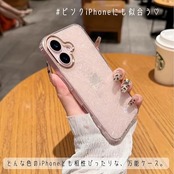 ナチュラルで可愛い“パールシェル風”のデザインに、きらめくパウダーラメをたっぷり散りばめた、まさに"映え"を叶えるiPhoneケース♡ 手に持つだけでテンションUP!光に当たるとふんわり輝くから、**ネイルやリングとの相性も抜群◎**