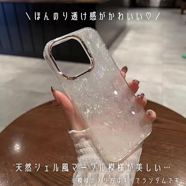 saymi's パール シェル ラメ 韓国 iPhone14 ケース 大理石みたいな美人ケース ゴールドライン ほんのり透け感 パウダーラメ 可愛い おしゃれ (iPhone14)