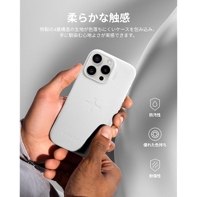 【MOVASの頑丈と耐久性が続く】MOVASヴィーガンレザーは防汚性能が高く、コーヒー、油、口紅など日常生活の汚れをサッと拭き取れ、スマホケースを常に新品のように保つことができます。MOVAS素材はMOFTが求める耐久性の基準をクリアしているだけでなく、環境に優しい技術を採用し、DMFなど有害な化学物質を一切含みません。 長期間に使用しても、変形したり色落ちたりすることがなく、iPhone 16 Pro Maxを全面的に保護し、見た目と性能を長持ちさせます。