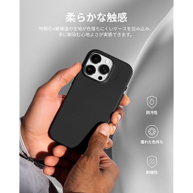 【細部までしっかり保護】iPhone 16 Pro Maxに設計されたカメラレンズ保護は、高さ1mmのフレームがあり、レンズを傷から効果的に保護します。 ケースの内側には繊細な触感のスエード素材を採用し、iPhone本体に傷がつくのを防ぎます。正面のフレームは1.3mmの高さがあり、ディスプレイを擦り傷から守ります。iPhone 16 Pro Maxのスピーカーにぴったりフィットする丸型の穴によって、外観の美しさをより高めるだけでなく、音質保護も向上させます。