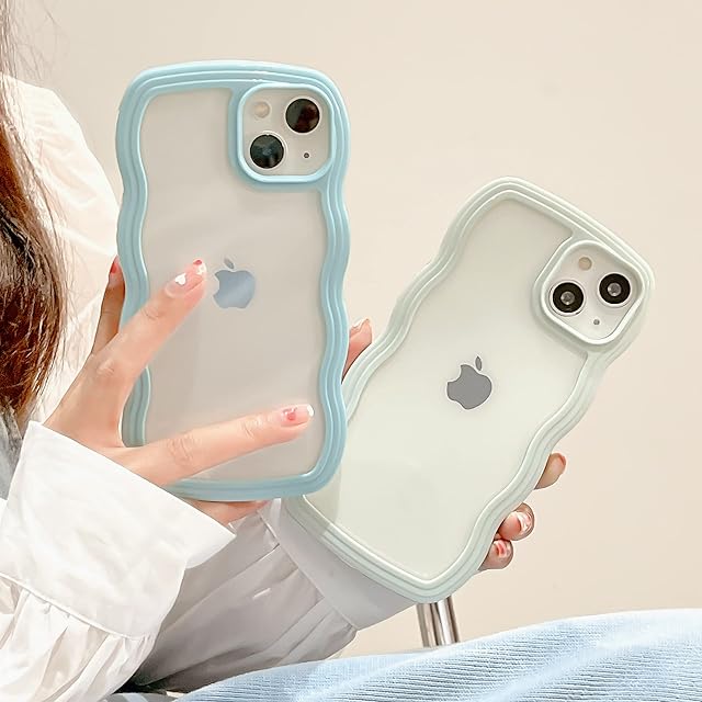 QLTYPRI iPhone 14ケース iPhone 13ケース クリア TPUカバー おしゃれ 韓国 可愛い 透明 薄型 軽量 耐衝撃 スマホケース ワイヤレス充電対応 ストラップホール付き アイフォン 14/13 ケース 6.1インチ 対応 - ブルー