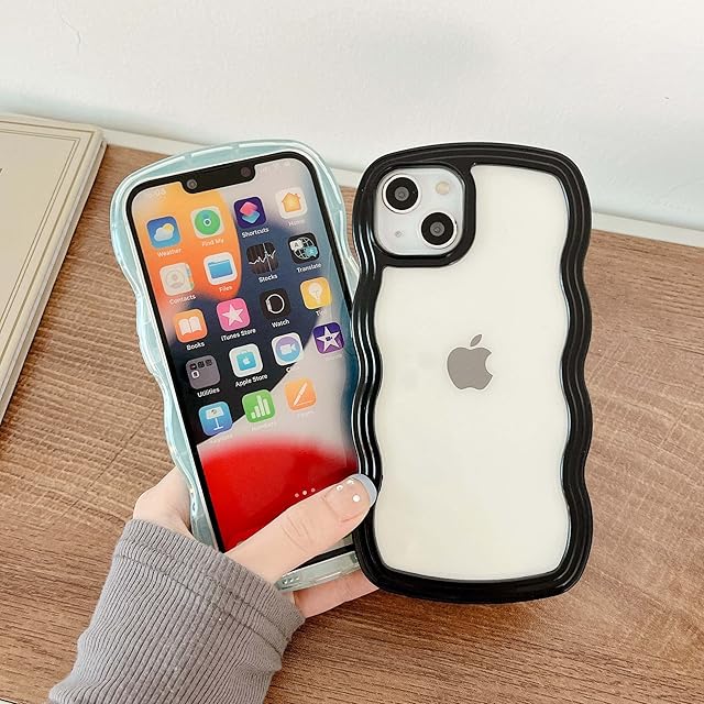 QLTYPRI iPhone 15 Plusケース クリア TPUカバー おしゃれ 韓国 可愛い 透明 薄型 軽量 耐衝撃 スマホケース ワイヤレス充電対応 ストラップホール付き アイフォン 15 Plus ケース 6.7インチ 対応 - ブラック