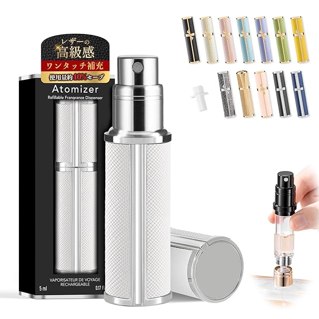 アトマイザー 【上質なレザー・クイックチャージ・25色展開】 香水 アトマイザー 底部充填 レザー 革 持ち運び 詰め替え 漏れない 香水入れ ケース ボトル 5ml プッシュ式 ワンタッチ補充 底部充填 (X02モダンホワイト)