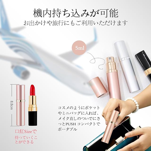 【ボケットサイズで精巧】可愛いアトマイザーは小さくて持ち運びに便利、容量5mlで口紅と同じサイズ、持ち運びに便利です。 機内持ち込み可能なので、お出かけや旅行時の持ち運びにも便利です。 シャツのポケットや通勤バッグに入れて、いつでもどこでも使えます。