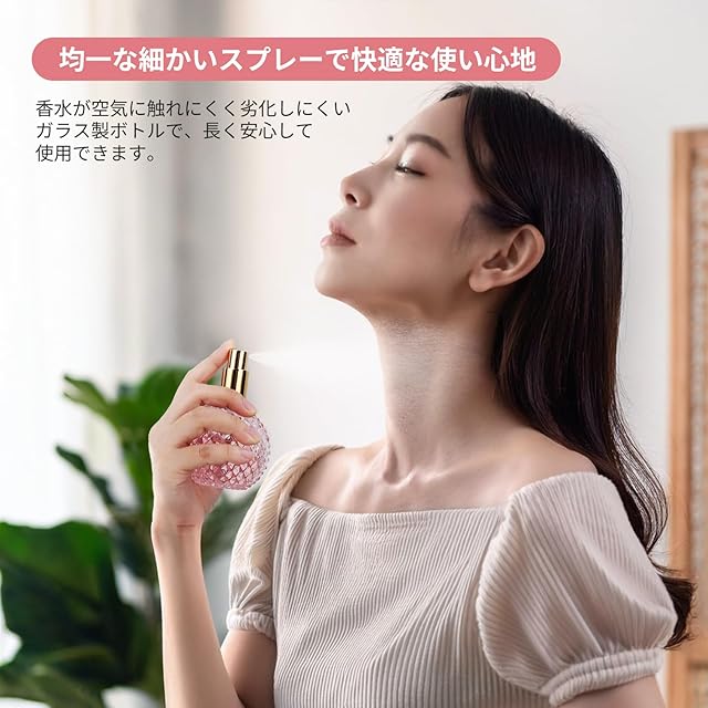 【香水以外の液体も使用可能】 ガラスは透明であるため、リキッドの残量が一目で確認でき、リキッドを補充できます。香水以外にも、化粧水やヘアスプレーやアルコール対応などの詰め替えにも使用可能です。このため、小分けボトルとして様々な用途に使え、非常に便利です。