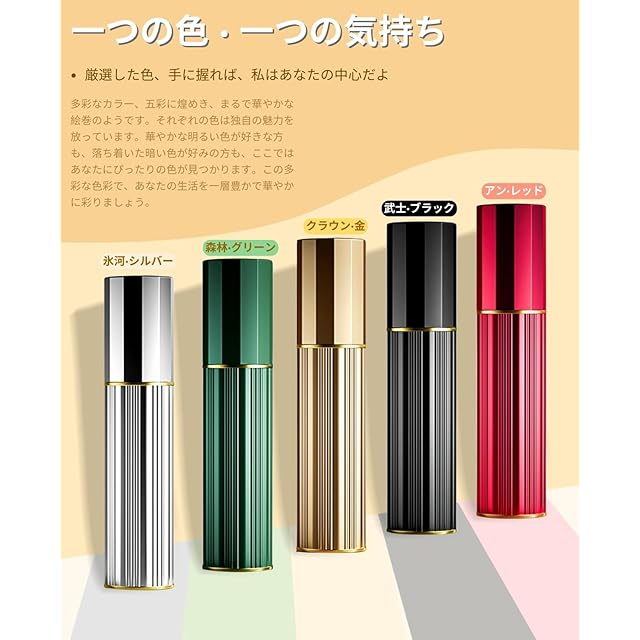 【2024の新型】: 新しい香水アトマイザーは、従来よりも充液速度が格段に向上し、密封性もさらに強化されました。また、独自のデザインで注目を集め、持ち運びやすさも向上しました。新型の特徴を存分にお楽しみください!