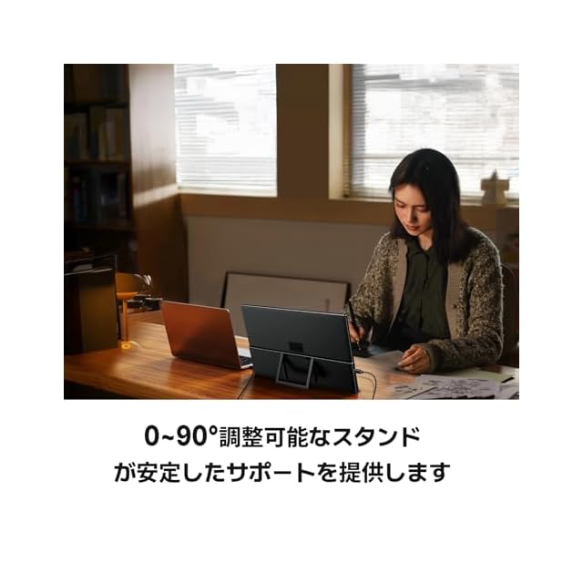 【スマートな一体型スタンド】 外部モニターはスマートな一体型スタンドを搭載している、横置きで0~90°調整可能なスタンドが安定したサポートを提供します。従来のカバー外付けモニターによりも滑りにくい、より安定したオフィス環境を実現します。画面コンテンツを仕事仲間と共有することで、仕事の効率を大幅に向上できます。