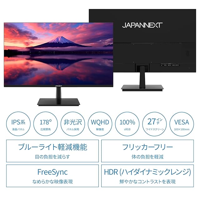 【Amazon.co.jp限定】 JAPANNEXT 27インチ モニター WQHD 2560x1440解像度 IPS ディスプレイ (HDMI/DisplayPort/スピーカー内蔵/VESA対応/ブルーライトカット) JN-i270WQHDR