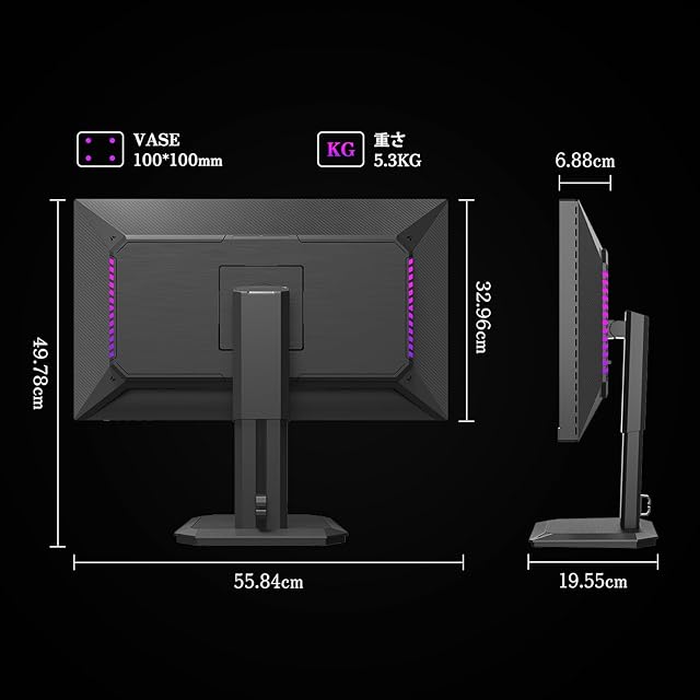 【自分好みのゲーミング雰囲気を演出】ディスプレイ背面には七色のLEDライトを搭載。好みのカラーにカスタマイズ可能で、ゲーミングデスクや部屋の雰囲気を華やかに彩り、没入感の高いプレイ環境を作り出します。