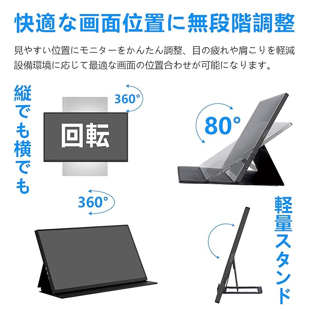 【スタンドとして使えるケース付属&VESA対応】 画期的な折りたたみ式スマートケース しても使用でき、縦置き横置きどちらでも本体を完全に支えることができます。本体背面に75mmx75mmのVESAマウント用のネジ穴を4箇所装備。ネジ(M4x5mm)やワッシャーなどを使用してVESA 75mm規格のアームなどに取り付けることで好きな位置に固定して使用することも可能です、小さい空間でも最善な配置が見つかります。【PSE認証済み3年保証】ご購入頂いた日から3年保証を提供しております。