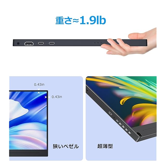 【薄型、軽量、シンプルでスタイリッシュなデザイン】Mayfee!モバイルモニターは、超薄型ベゼルを採用した超薄型のポータブルモニターです。極薄ベゼル設計によりベゼルが目立ちにくく、表示されている画像に集中できます。シンプルでスタイリッシュなデザインは、洗練されたお部屋やオフィスの雰囲気にマッチします。
