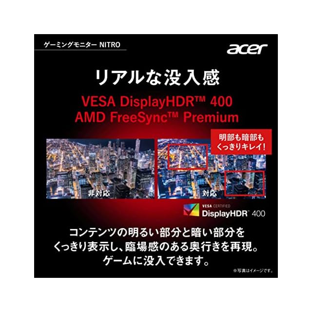その他機能:ブルーライトシールド、フリッカーレス、VESA DisplayHDR (TM) 400、AMD FreeSync (TM) Premium