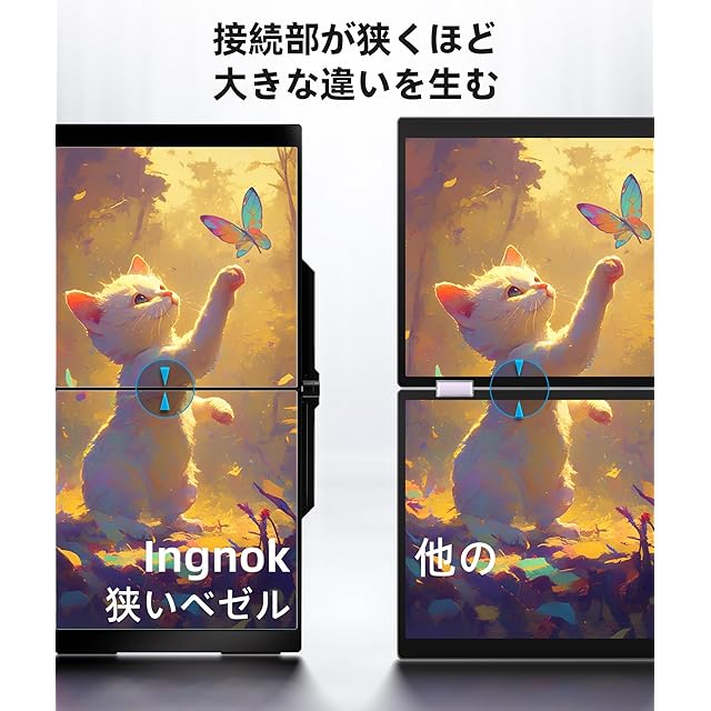 即座のデュアルスクリーンセットアップ。プラグアンドプレイで、デバイスのディスプレイを簡単に拡張し、整然としたデスク環境を実現します。デバイスにUSB 3.1フルファンクションポートが搭載されていることを確認してください。分からない場合は、まず当社にご相談ください。 折りたたみ可能な画面で生産性を革新。最先端の折りたたみ可能な画面は、シームレスなマルチタスクと効率の向上を可能にし、移動中の生産性を再定義します。Ingnokラップトップ画面拡張機能の革新的なデザインが可能にします。 スリムで超ナローベゼル、最大のインパクト。Ingnokポータブルコンピュータモニターの革新的な超ナローベゼルデザインは、コンテンツをより身近に感じさせ、これまでにない没入型のビジュアル体験を提供します。 優れたディスプレイ、個人のセットアップ。各ノートパソコン用モニターは、IPS、FHD、100% sRGB、320ニットの明るさを備え、優れたビジュアルを提供します。それぞれをカスタマイズして、個別の視聴体験を実現できます。 簡単なプラグアンドプレイのための重要なヒント。WindowsおよびmacOSシステムでデュアルスクリーン機能をお楽しみください。デバイスにUSB 3.1フルファンクションポートが搭載されていることを確認してください。初期設定については、ドライバーのインストールに関する包括的なA+ページのビデオガイドを参照してください。
