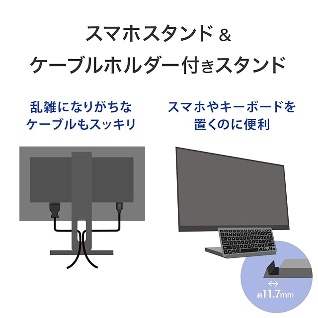 【3辺フレームレスパネルを採用】パネルとフレーム(枠)による段差がないフラットなフレームレスパネルを採用しました。極細フレームですっきりした印象を与え、マルチディスプレイにもオススメです。スタイリッシュなデザインの液晶ディスプレイは、オフィスにもマッチします。