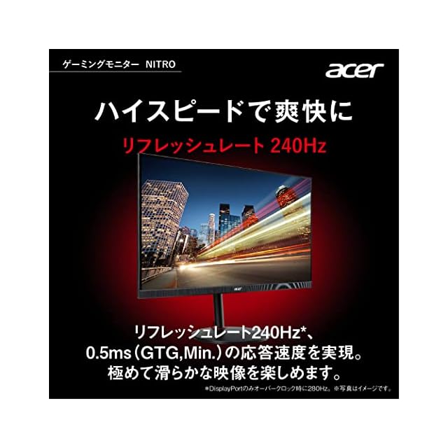 Acer ゲーミングモニター Nitro XV252QZbmiiprx 24.5インチ IPS 非光沢 フルHD 0.5ms 240Hz HDMI (280Hz DisplayPort/オーバークロック) AMD FreeSync™ Premium VESA DisplayHDR 400 スピーカー内蔵 VESAマウント対応 高さ調節 チルト スイベル ピボット レス
