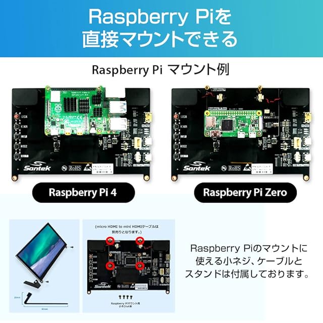 [Santek] オープンフレームタッチモニター 7.0inch SOF0700A1B Raspberry Pi用モニター 高輝度600cd IPS スピーカー内蔵 - Raspberry Pi 4/3/2/1 ZERO Jetson Nanoマウント可能 (micro HDMI to mini HDMIケーブル[セット商品], 7.0インチ)