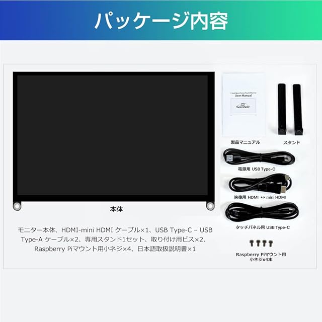 [Santek] オープンフレームタッチモニター 10.1inch SOF01010A1B Raspberry Pi用モニター 高輝度500cd IPS スピーカー内蔵 - Raspberry Pi 4/3/2/1 ZERO Jetson Nanoマウント可能 ([本体のみ], 10.1インチ)
