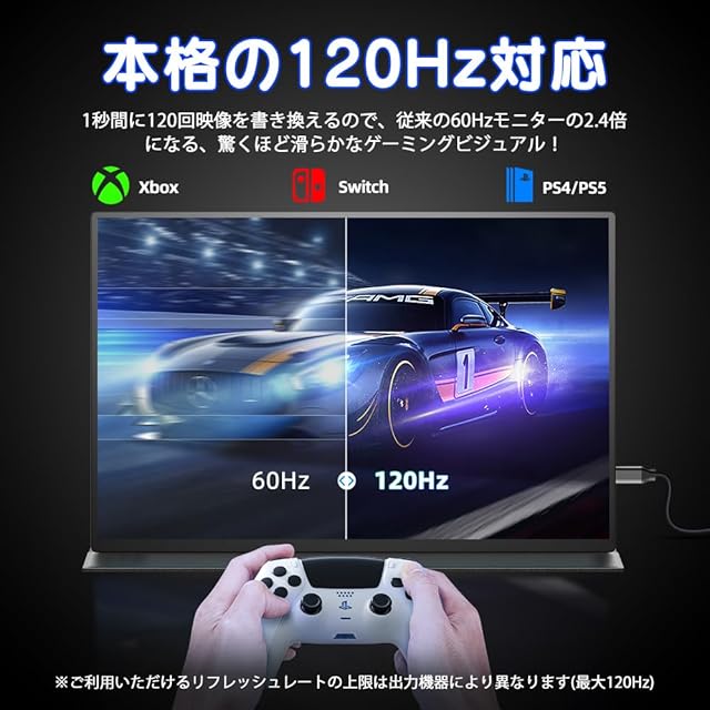 モバイルモニター 120Hz 高速応答 16インチ ゲームモニター FHD 1920x1080 16:9画像比 広色域 非光沢 IPS液晶パネル 超軽量 超薄型ディスプレイ 狭額縁 ブルーライト機能 疲れ目軽減 スピーカー内蔵 HDRモード対応 Type-C/標準 HDMI接続 PS4/PS5/XBOX/Switch/PC/Mac