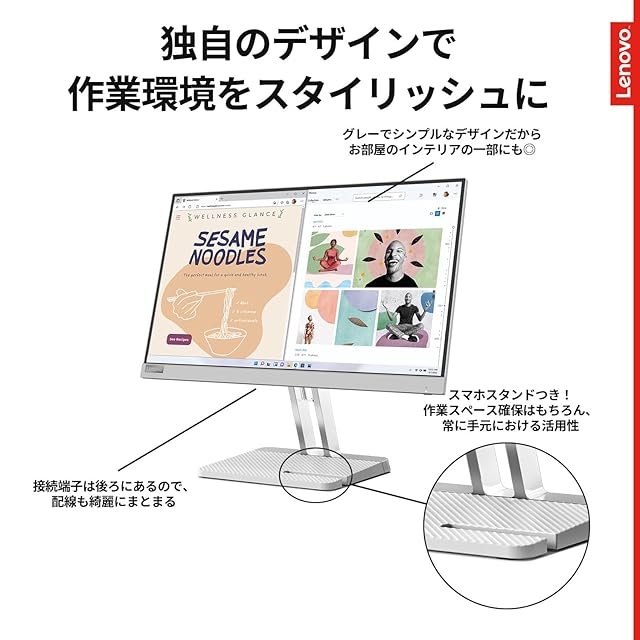 Lenovo L22e-40 モニター (21.45インチ VA WLED液晶 FHD 75Hz 4ms 非光沢 チルト対応 VESA HDMI ケーブル付) グレー 67AFKACBJP