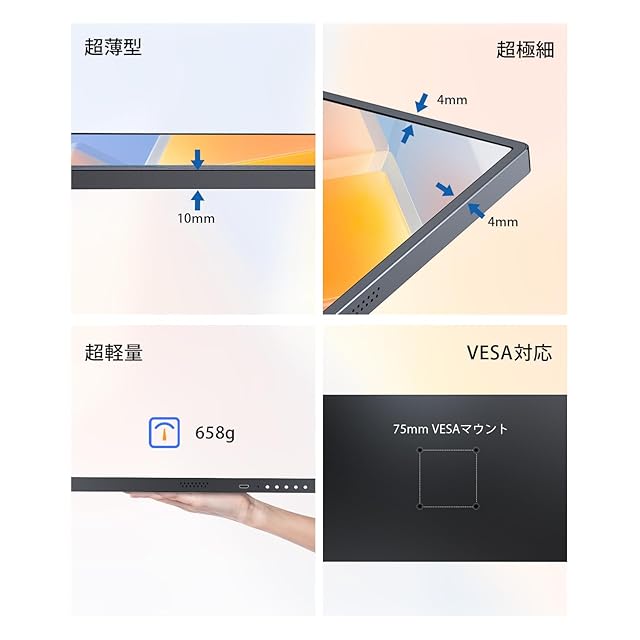 ✅【軽量持ち運び&真心こめたおもてなし】 ✅UPERFECTポータブルモニターは超薄型ベゼル設計を採用しており、最薄部約10mm、重さ約658g!手軽に持ち運べる15.6型軽量&スリムタイプのポータブルディスプレイ。外出先での仕事やプレゼンテーションに最適です。滑り止め材料の保護カバーはモバイルモニター本体をホコリや傷から守りともに、折りたたむことでスタンドとしても使用できます。2年間の保証期間が付いております。製品の使用について何かご不明な点、万が一、保証期間に初期不良がございましたら、お気軽に注文履歴より弊社までお問い合わせください。 必ず最善を尽くし、保証サービスにご対応いたします。(PSE認定済!)