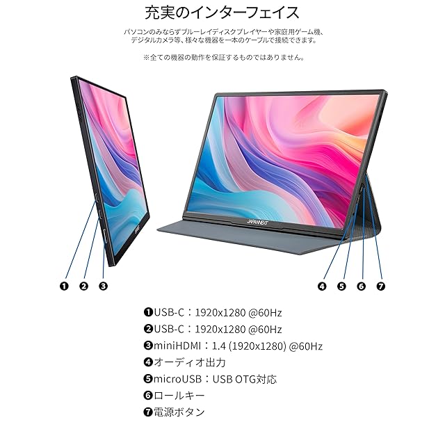 【ECサイト限定】JAPANNEXT 10.5インチ IPSパネル搭載 フルHD+(1920x1280)解像度 モバイルモニター JN-MD-IPS105FP miniHDMI USB Type-C microUSB sRGB:100% HDR400相当 本体重量:230g USB OTG対応 スマートケース付き【2年保証】
