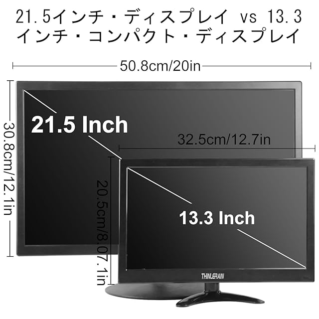 Thinlerain 13.3インチモニター 小型 ディスプレイ 液晶ディスプレイ モニター/1366x768/95°視野/HDMI VGA AV BNC USB ポート/VESAマウント/スピーカー内蔵/リモコン