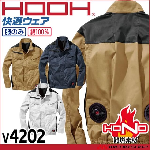 [村上被服] ファン付き 作業着 HOOH 快適ウェア 難燃 長袖 ブルゾン (ファンなし) V4202 メンズ LL 1ネイビー