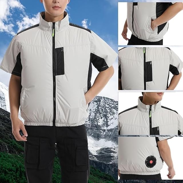[foxseon] 空調作業服 冷却服 【300g超軽量30000mAh大容量バッテリー付属 大風量 3段階調節】 ベスト 半袖 ファン付き 作業着 半袖 ブルゾン 薄い 通気 軽量 涼感 夏服 熱中症予防 猛暑対策 空調ファンベストセット Gray-L