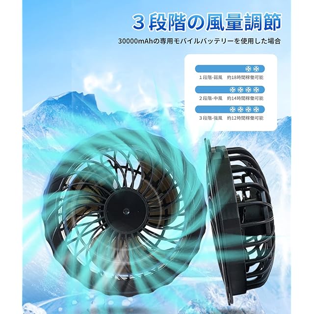 【30000mAh大容量バッテリー付き&超時間稼働 】PSE認証を取得済モバイルバッテリーを付属しておいて、お客様が安心安全してご利用できます。バッテリーの容量30000mAhで、超時間稼働することが実現できます。風量モードにより使用時間は約12‐18時間になります。モバイルバッテリーには5V 2.2A安定な出力で、夏の冷却シリーズ等ではなく、スマホなどの電子製品に適用です。この1台で様々なシーンで大活躍です!