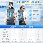 【猛暑への熱中症対策&いろんなシーンで活躍&洗濯機で洗える】セット内容:作業ジャケット服ベスト*1、バッテリー*1、ファン*2、接続ケーブル*1、バッテリーへ充電用ケーブル*1、日本語説明書。機能性を損なうことなく、見た目にもこだわった高品質なファン付きベスト、どんな作業現場でも違和感なく馴染みます。炎天下の作業で涼しい服の使用範囲は非常に広く、普通の工事現場、農作業、運送業などの作業着としてはもちろん、釣り、登山、ゴルフ、キャンプ、サイクリング、アウトドア活動などのレジャー用の暑さ対策ウェアとしても完璧です。屋外などの高温環境の中に長時間いる場合でも熱中症のリスクを低下させることができます。この空調ウェアは洗濯機でお洗濯が可能ですので、洗濯前、必ずバッテリー、ファン、ケーブルなどを取り外してください。※ご注意:表記サイズには若干の誤差が生じる場合があります。お使いのモニターの発色具合によって、実際のものと色が異なる場合もございます。予めご了承くださいませ。