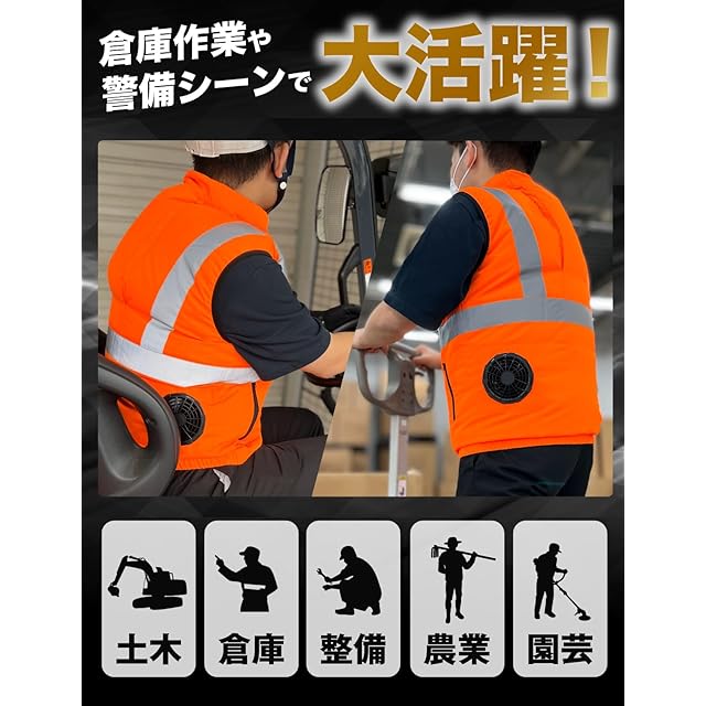 [Duerfusa] 空調 ファン付きウェア用 ベストのみ 洗い替え 作業服 吸汗速乾 夏 作業用 倉庫作業 アウトドア 男女兼用 安全服オレンジ LL