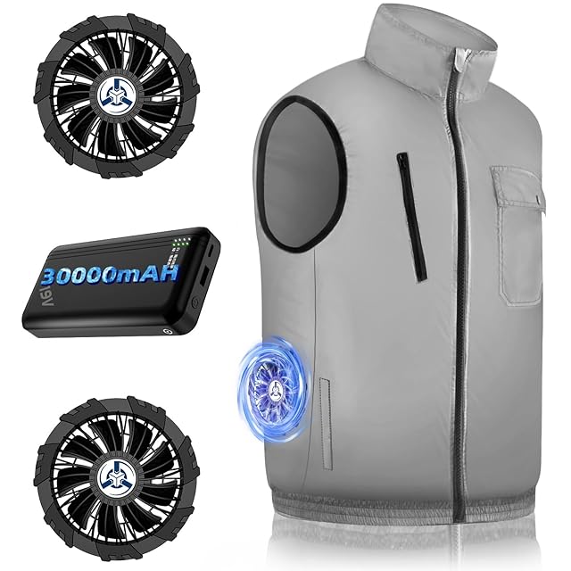 [Sumeriy] ファン付き作業服 空調作業服 ベスト 超高電圧出力 30000mAhバッテリ 最大30時間連続使用 ファン付きベスト 国産9枚ファン 大風量 静音 4段階風量調節 空調作業服 ファンバッテリーセット 薄型 吸汗速乾 UVカット 熱中症予防 暑さ対策 屋内外作業 通勤 ゴルフ 男女兼用 (M, グレー)