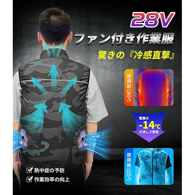 【28Vファン付き作業服&セット内容】2025夏の最新作、28V空調作業服 ファンバッテリーフルセットが新登場!左右の腰の辺りに取り付け2個のファンにより、空気を服の中に取り込み、汗の気化を促進し、体温と湿度を快適なレベルまで調整し、清涼感に溢れている 2025最新モデル KLIFEファン付きベストです。真夏のべたつく汗、焼けつくような日差し対策として活躍します。作業時の動作を快適に保つベストタイプ!裏メッシュ仕様と裏ポケットで、配線などはしっかり収納して、直接肌に触れることがなく、作業に支障がないです。ポリエステル100%生地を採用し、速乾性と通気性に優れている ます。襟のジッパーを開けて、アイスバーに入れて、涼しさを2倍にすることができます。「セット内容」ベストx1、ファンx2、モバイルバッテリ—x1、接続ケーブルx1、バッテリー用充電アダプターx1、日本語取扱説明書x1。