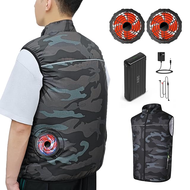 [KLIFE] ファン付きベスト バッテリーセット【2025新登場&28V超高出力& 30000mAh大容量】空調作業服 ファンバッテリーセット 4段階風量調節 空調ベスト 薄い 軽量 UVカット 男女兼用 ファン付き作業服 暴風ファン 急速充電器付 猛暑対策必須品(2XL, カモフラージュ)
