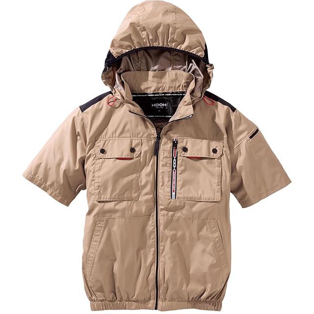 [武蔵野ユニフォーム] 村上被服 ミドルファン半袖フードジャケット V1127 快適ウェア 空調作業服 服のみ単品 ストラップ付き<025-V1127-ス>(72-ライトベージュ 3L)